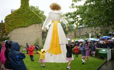 Socially engaged sculpture, photography and film linking local traditions with schools, inspired by an archive image of a harvest festival figure. Originally shown at Compton Verney and in the Library of Birmingham, then extended to Whalton, Northumberland, with the additions of bespoke music and choreography for a community-wide event.
