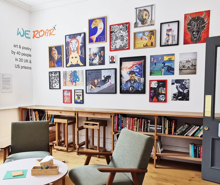The national award-winning We Roar exhibition of artworks and poetry by 40 people in UK and US prisons is at Clayport Library in Durham until 29 January 2026, before continuing on tour into May (see full dates here). To broaden gallery experience access, we've also created a virtual version of the National Justice Museum exhibition. Every tour venue is hosting free related events, so please join us where you can. Supported by Arts Council England, this extends the huge success of last year's tour of UK prisons and the US Ann Arbor Art Fair, with key project partners Novus and PCAP.