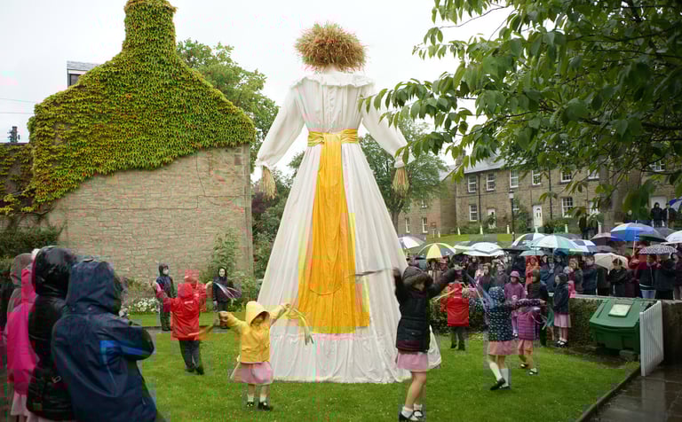 Socially engaged sculpture, photography and film linking local traditions with schools, inspired by an archive image of a harvest festival figure. Originally shown at Compton Verney and in the Library of Birmingham, then extended to Whalton, Northumberland, with the additions of bespoke music and choreography for a community-wide event.